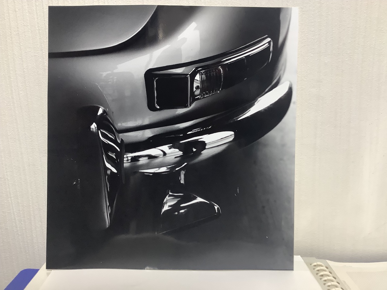 シートフィルム、リンホフ23の板からは外れますが、ハッセルブラッド500、プラナー80mmで撮影したメルセデスベンツ300SLの色っぽいテールです。バンパーに、自身の姿が映り込んでいますのが欠点ですがオーナーのご好意いただき楽しい撮影でした。印画紙は、イルフォードのバライタ四つ切り、フイルムも120 イルフォードデルタ400、撮影データ、現像データは、もう30年も前の事で残念ながらメモしていませんでした。