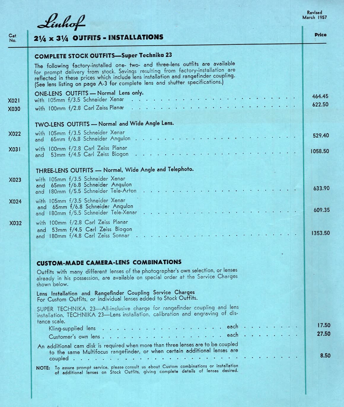 先日、サイトから1957年当時のlinhofプライスリストを流し見して