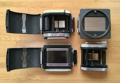 重量はどれも約800 gで,重くて嵩張る。しかし,内部のインサートにフィルムが高張力で巻かれた状態で,ホルダーの裏蓋がインサートを開口部の2本の細いローラーに強く押し付ける構造になっている。恐らく120フィルムホルダーの中で,フィルムの平面性は最高だろう。内部は金属筐体の組み合わせだけで遮光され,経年劣化する素材(例えば,モルトプレーン等)は使われていない。スーパーローレックスに慣れると,他社製の華奢なホルダーが信用できなくなると言う人がいるが,私も同じ意見だ。今後5~10年程,中判用デジタルバックがコンシューマー向けに普及するまで現役で活用していきたい。