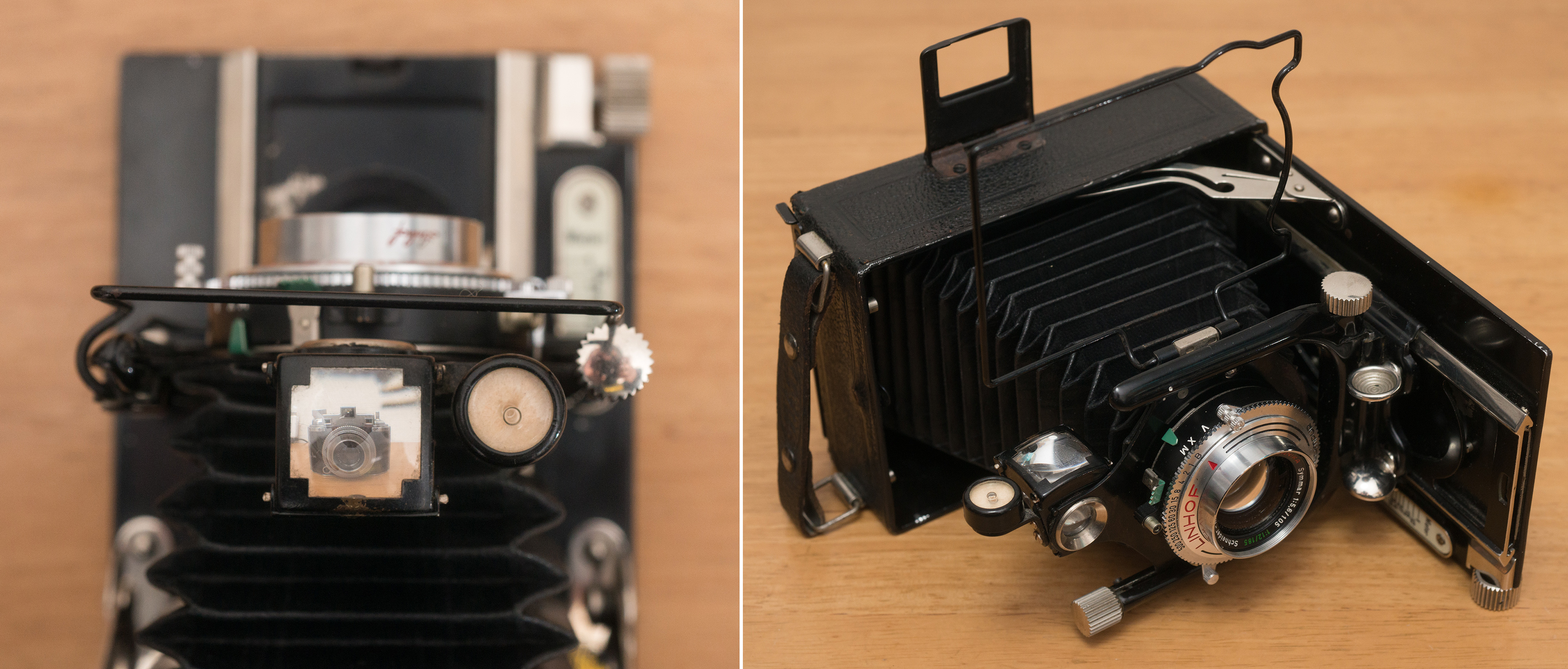 この種のハンドカメラには後のホースマンやセンチュリー・グラフィック、テヒニカのようなティルト・シフト機能はないが、その他の点では遜色なく、ピントや構図をきっちりと確かめながら撮影するのに都合が良い。そこで今回、シフト機能を最大限活用できるよう、包括角度(画角)がより大きく、またコーティングが施された新しい世代のレンズを装着し、現役のカメラとして活用することを考えた。