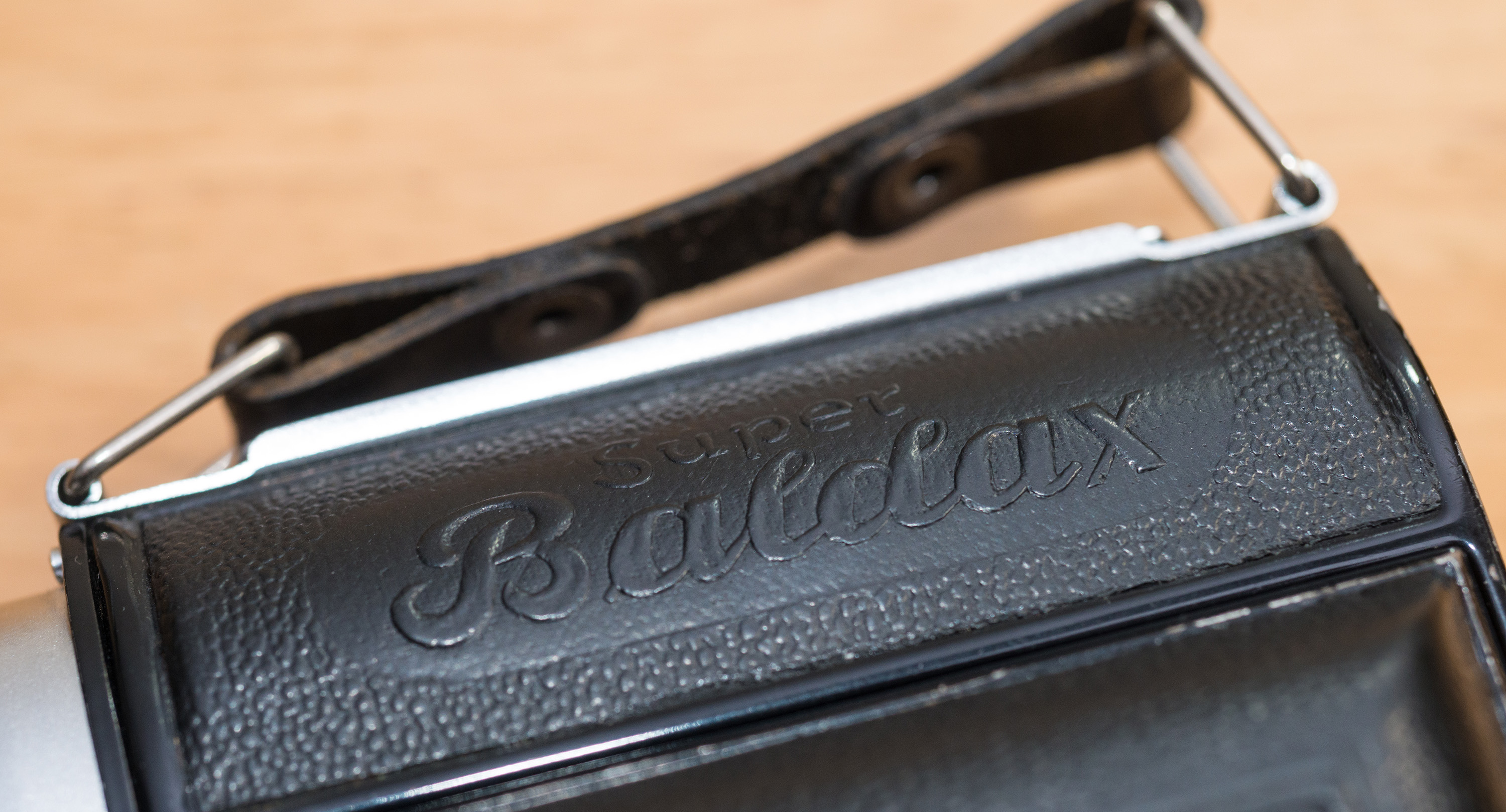 スーパーバルダックスは1954年ごろ発売で、バルダ社が最後に製造したスプリングカメラだ。バルダは戦前から多くのスプリングカメラを開発製造し、他社にもボディを供給するほどのメーカであったが、そのノウハウが存分につぎ込まれており極めて使いやすいカメラとなっている。特にフィルム装填の容易さは特筆できる。フィルム室には送り側・受け側ともにゆりかご型のフィルム受けがあり、それをボディから回すように引き出すことで、フィルムを置くように入れることが出来るのだ。特に送り側では、フィルム受けを引き出すと自動的に固定軸が退避する親切設計となっている。ボディはスプリングカメラらしく、プレス成形により作られた前ボディと後ボディが内部のフレームを覆い隠すような構造となっており、ダイキャストフレームを持つカメラに比べ軽量である。
