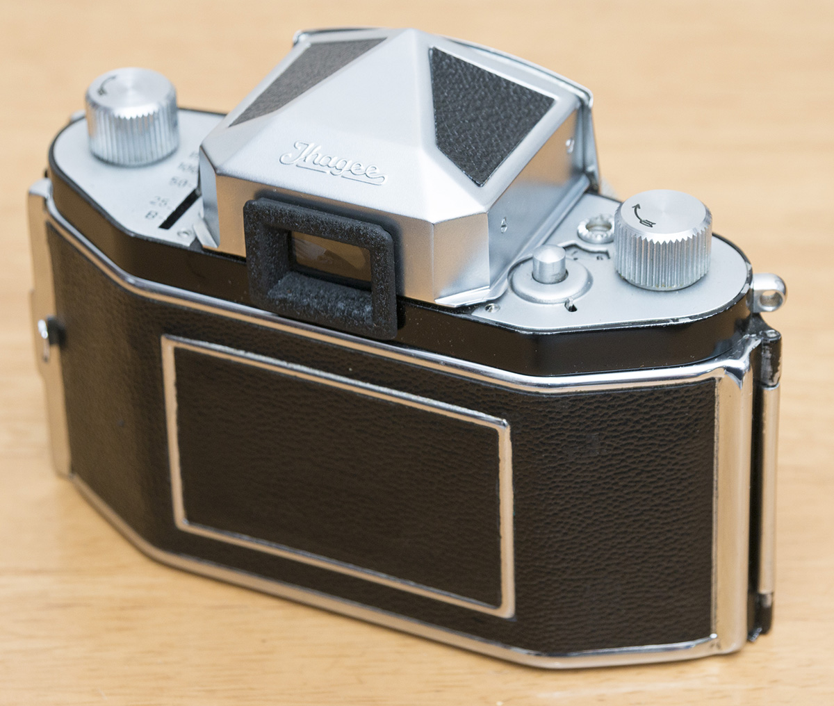 少し時代を遡るが、イハゲーの歴史についても触れておく。イハゲーはオランダ人のヨハン・スティーンベルゲンが1912年にドレスデンで創設したカメラメーカであり、小型一眼レフのパイオニアである。35mm判の一眼レフカメラは、ソ連で作られた「スポルト」が世界初であるとされているが、これは極めて特殊で少数しか作られなかったため、世界的に知られ、また定評を得た「キネ・エクサクタ」(1936年)を製造したイハゲーは35mm一眼レフカメラの事実上のパイオニアであるといえる。
