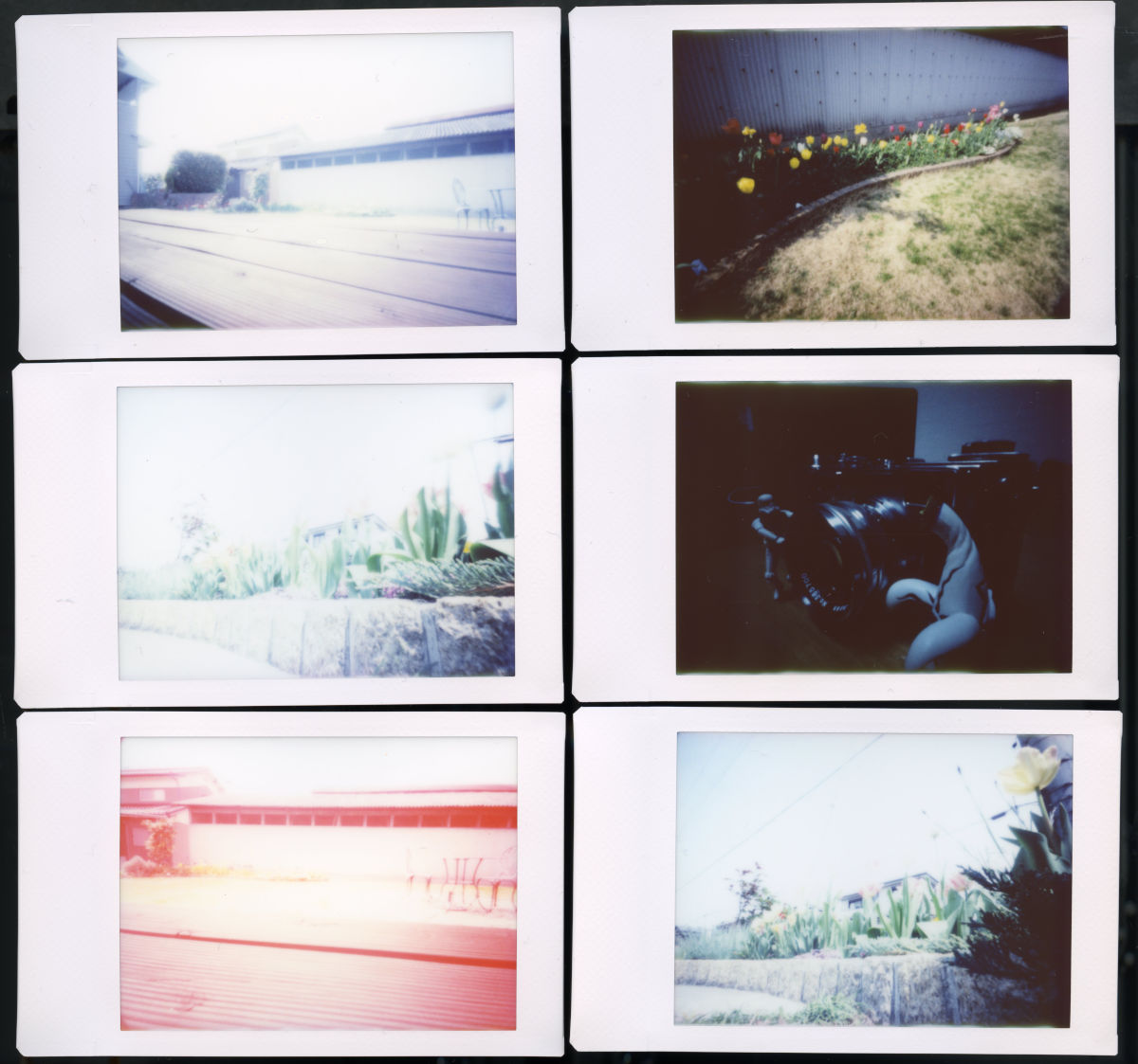 撮影結果。ネガと違ってプリント時に露出の調整ができないのでやや露出にシビアなのと、最初は安全を見て?露出を長めに設定してしまったのでいくつか失敗をしたが、日中屋外の日向なら1〜3秒の露出で撮影ができる。一方、屋内では1分程度の露光でよいはずのところ、5分露光しても暗い写真になった。おそらく相反則不軌(暗い露光を長時間行ったとき、フィルムの実効感度が下がる現象)が強いのだと思う。フィルムの感度が高いため(ISO400-800程度らしい)、ピンホールカメラらしい長時間露光にはならないが、近接してもピントがぼけないピンホールカメラらしい写真の撮影が楽しめる。