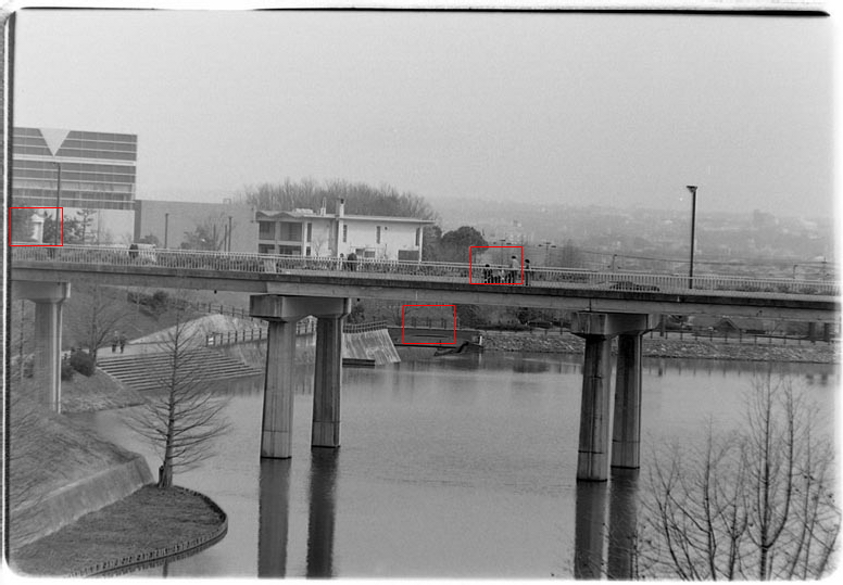 中央付近では非常にはっきりとした差が見られる.橋のタイル目地,セーターの