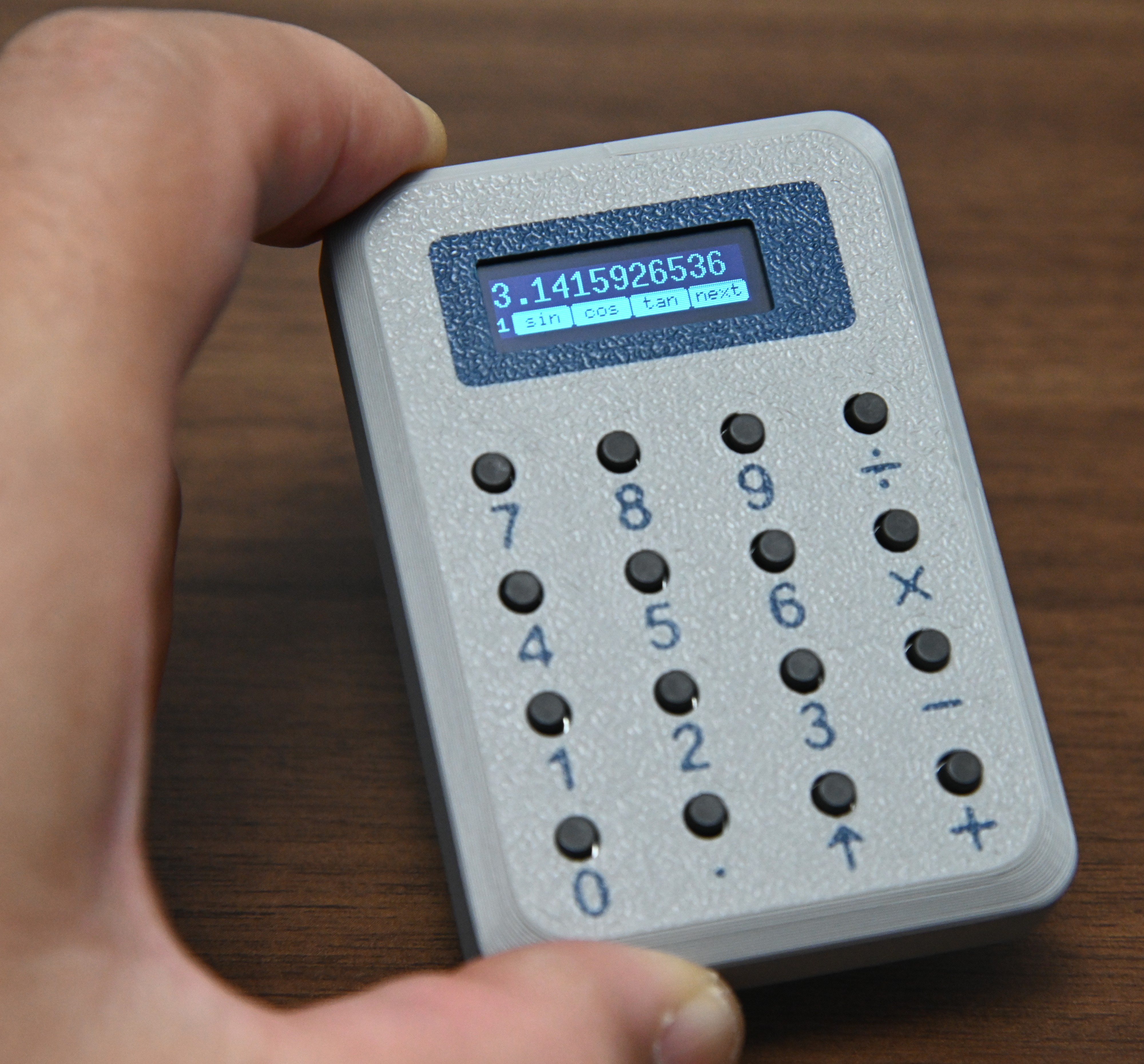 RPN電卓にこだわっていると、選択肢の少なさを感じる。代表的なHPの電卓にもいろいろなバリエーションがあるとはいえ、いずれも関数電卓や金融電卓など高機能なものばかりで、単純な電卓は見当たらない。高機能な電卓はキーが多いため、どうしても大きな筐体に小さなキーが並んだものになってしまう。そこで「キーが大ぶりで軽いタッチ」の電卓としてPC用のテンキーを利用した木製外装のRPN電卓を制作したが、ここでは逆に「使いやすさよりも、小ささを優先したRPN電卓」を指向してみた。ただし、持ち歩いてRPNの便利さを布教する・・ためかどうかはさておき、機能にも妥協したくない。そこで見た目は普通の電卓でありながら、関数電卓機能も搭載してみた。