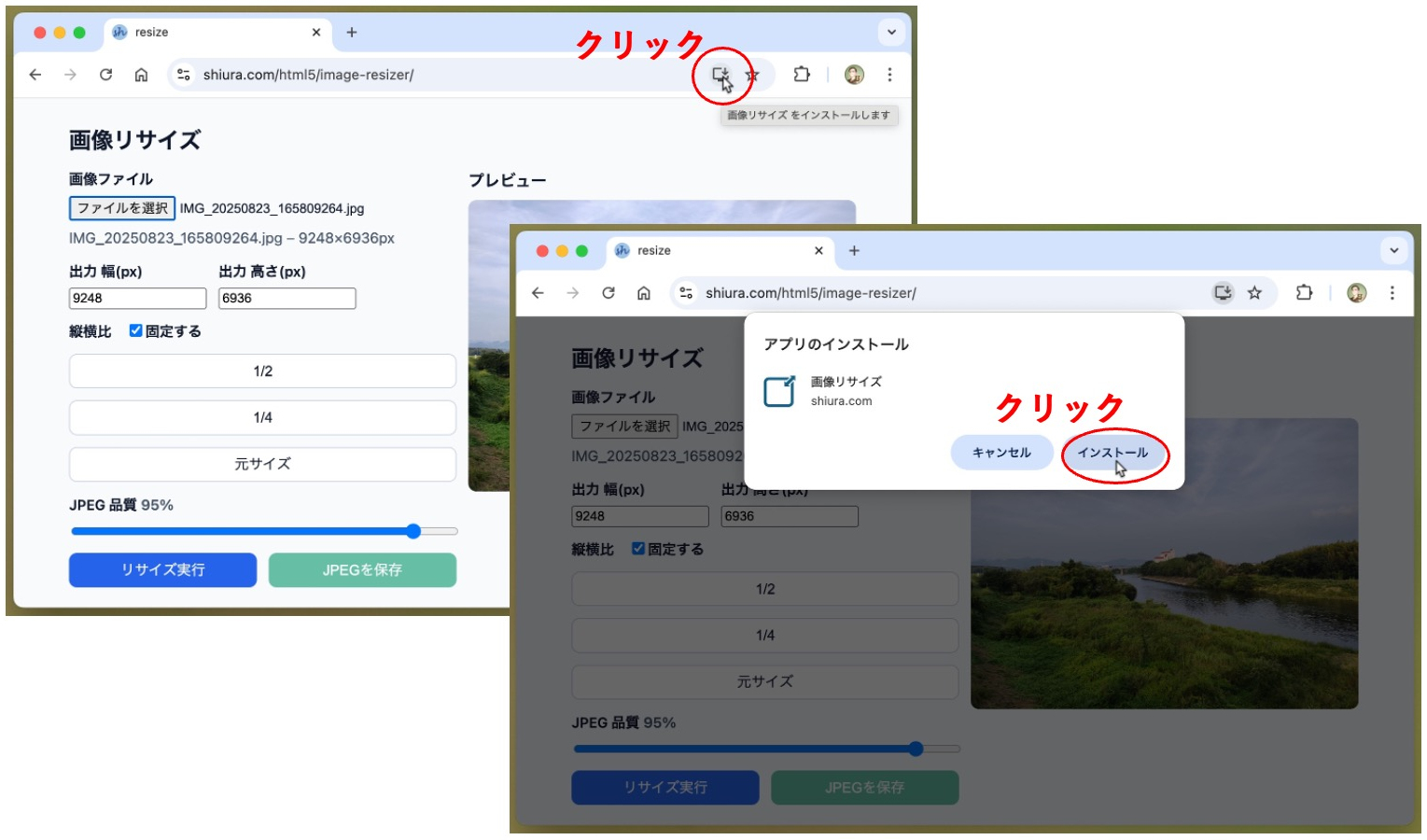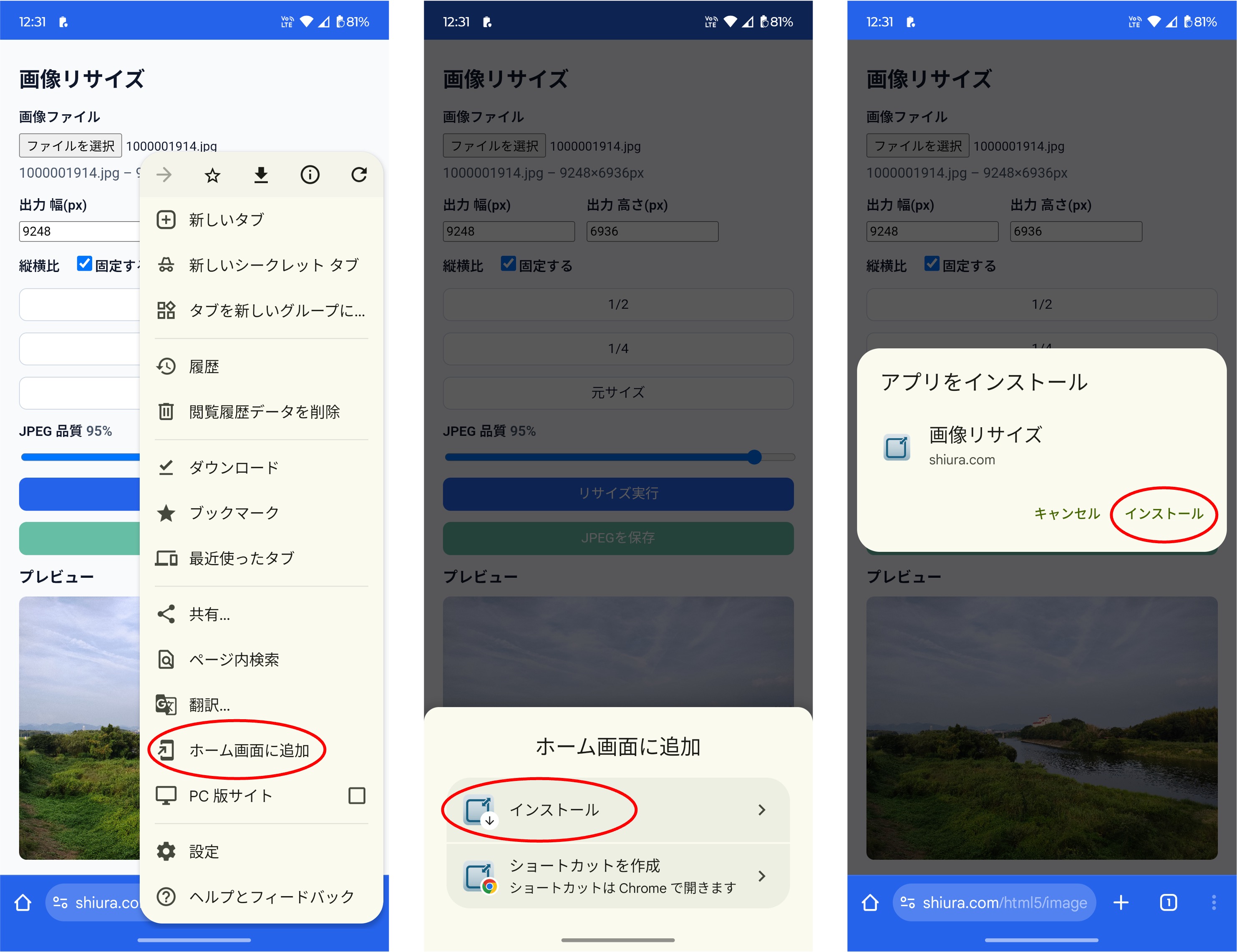 - Android デバイスにPWAアプリとしてインストールするとステータスバー等が消えて、時間の文字だけが点灯した時計になります。